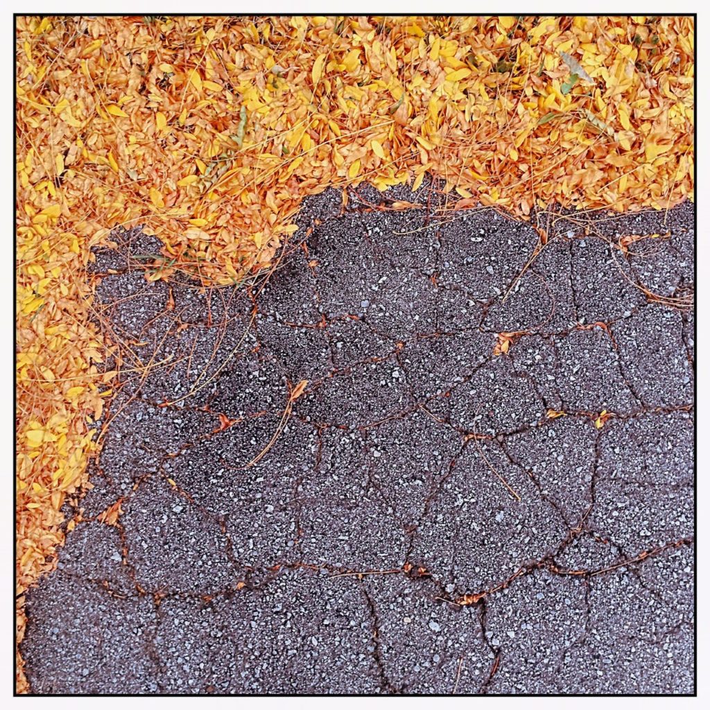 It is like this each October. Random flowers still trying. Windblown leaves over cracked asphalt, in days soon to be wrinkled and weary brown, and then unnoticeable.